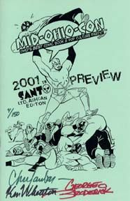 This rare Mid-Ohio-Con preview ashcan was created to promote the all-new Santo adventure comic but sadly is all that exists of the series when it got shelved at the last moment! 32 pages written by Yambar with art by Broderick and inks by Ken Wheaton. Contains the entire interior guts of the first issue plus a sketch gallery and the cover art for the second issue. Limited to only 150 signed and #d copies worldwide