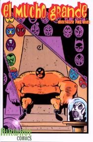 Created and scripted by Yambar, with art by Broderick, and inks by Wheaton and special guest Mike Kazaleh. This 64-page softbound was published by Airwave Comics and includes all 4 chapters of the first El Mucho Grande epic. Find out why this masked monster wrestler and vampire chick hugging mountain of lucha libre mirth goes to Saturn, fights the gods of Asgard, and faces off with a brood of giant Japanese monsters just so he can live in a trailer in Wisconsin! He really is the next big thing!