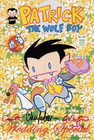 This comic by our good pal, Art Baltazar, is really kind of historical. Yeah, Patrick still runs around growling and biting stuff with his pets and alien buddies, but this time it's during his actual creator's wedding! In the Spring of 2002, Art married his sweetheart Rose ...and Chris Yambar performed the wedding! Now you can see how it really (sorta) happened. We've got a limited number of this issue signed by Arthur and Rose(the happy couple) and 'Pastor Chris'. The best thing about this comic is watching Yambar's chin hair disappear and reappear every couple of panels. Amazing! Actual overheard comment during the bridal dance: "I didn't know that Pastors were allowed to move that way!"