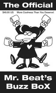 This essential collector's box includes 20 out of print Moordam Comics featuring EVERY vintage issue of Mr. Beat and his fellow comics pals Courageous Man #1-3, Levi's World #1-4, Burger Bomb #1 , Bambeano Boy #1 (2nd printing), World's Funnest Comics #1, Magic Inkwell Comic Strip Theatre #1 and the all new Mr. Beat Show. All are signed by Yambar and/or the title's creator. This set includes all cover variant editions, a limited edition Mr. Beat 10th anniversary button, and a signed full color Mr. Beat lithograph by Chris Yambar. It doesn't get better than this people! Limited to 100 sets worldwide!